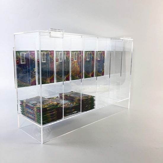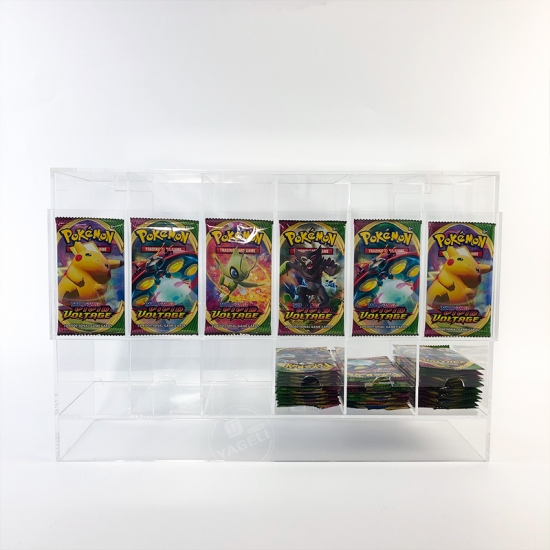 Este dispensador de pacotes de acrílico com 6 compartimentos foi especialmente projetado para organizar e exibir pacotes de cards de Pokémon. Feito de acrílico de alta transparência, ele oferece uma maneira transparente e elegante de exibir seus pacotes de cards, mantendo-os organizados.
