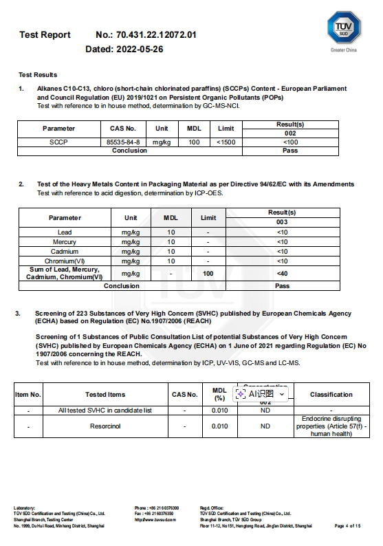 Como o mercado de acessórios TCG Com a crescente tendência de colecionáveis de maior valor e armazenamento de cartas a longo prazo, a segurança dos materiais tornou-se uma preocupação cada vez maior para marcas, distribuidores e compradores internacionais. Temos o prazer de confirmar que nossos produtos de acrílico para proteção de cartão premium passaram Certificação TÜV , com parâmetros essenciais para metais pesados totalmente em conformidade.