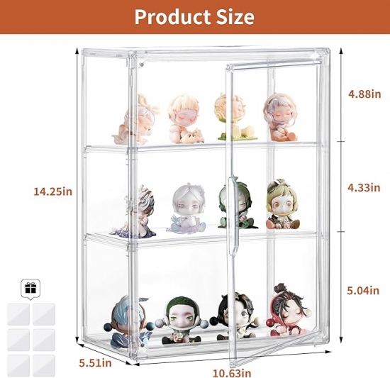 Feitas de acrílico premium, essas vitrines oferecem clareza excepcional para destacar seus itens colecionáveis; com divisórias ajustáveis, elas oferecem armazenamento personalizável para diferentes itens, e sua estrutura durável e à prova de poeira protege objetos de valor contra danos e os mantém com aparência de novos, tornando-as a escolha ideal para exibir e preservar suas preciosas estatuetas e itens colecionáveis com estilo.