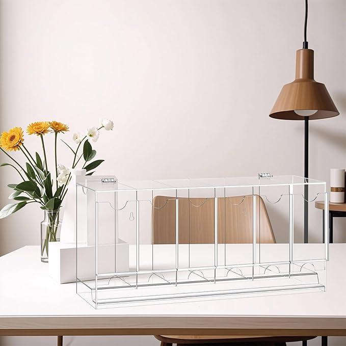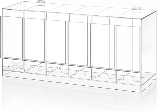 Este dispensador de acrílico com 6 compartimentos destaca-se por suas múltiplas vantagens práticas: sua construção em acrílico ultratransparente e resistente a riscos preserva a visibilidade dos itens, resistindo ao desgaste; os 6 compartimentos separados mantêm o conteúdo organizado e evitam a mistura de diferentes itens colecionáveis ou produtos; o design compacto e leve se encaixa em mesas, prateleiras ou balcões de lojas sem ocupar muito espaço; a estrutura aberta na parte superior permite acesso rápido aos itens com apenas uma mão; e sua construção durável protege o conteúdo contra poeira e pequenos impactos, equilibrando proteção a longo prazo com funcionalidade prática e ideal para exibição, tanto para colecionadores quanto para lojistas.