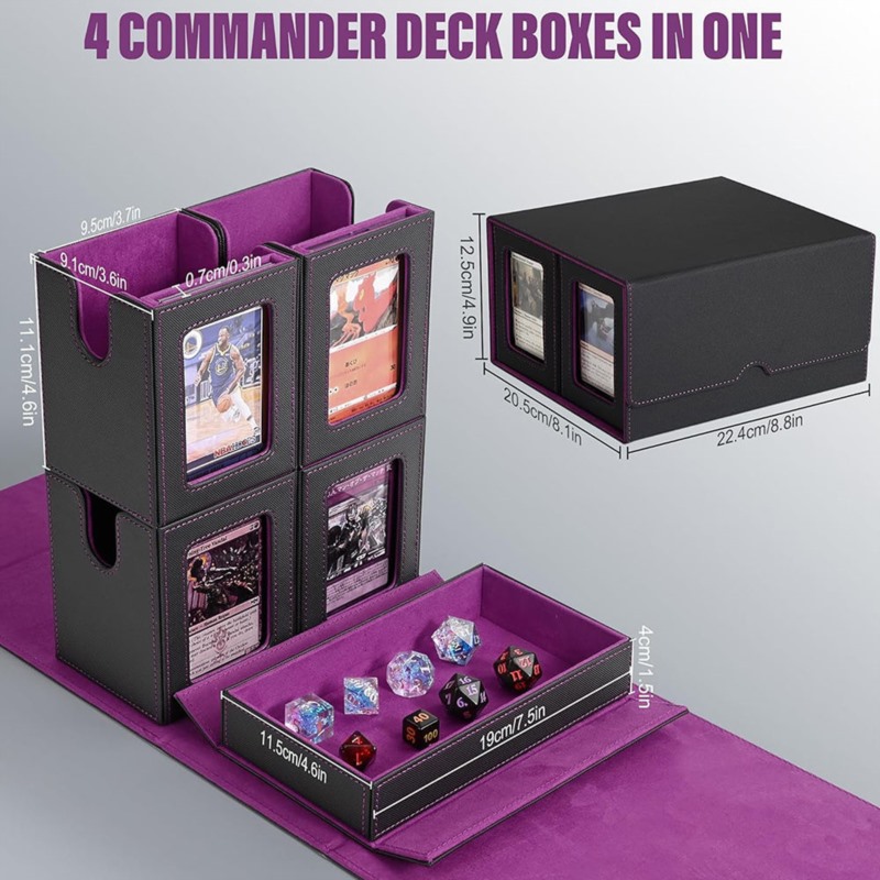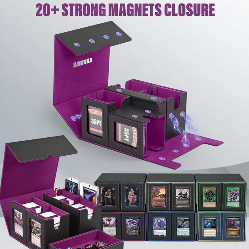 Recently, the 5 in 1 Trading Card Storage Box design has gained strong attention across the MTG and TCG accessory market. Unlike traditional single-compartment boxes, the new Card Deck Box for MTG with Commander Display features a 4-row internal structure, allowing players to organize multiple Commander decks in one unit.