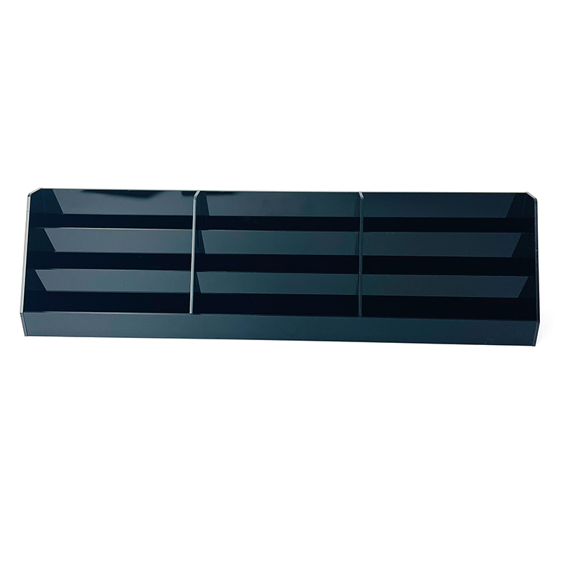 : seus mais de 5 compartimentos em níveis acomodam vários cartuchos (dependendo do tamanho), apresentando cada etiqueta em um ângulo legível. Também