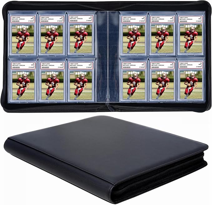 O fecho de correr completo impede a entrada de poeira, umidade e detritos, enquanto a lombada interna resistente garante que o fichário mantenha sua forma mesmo quando totalmente carregado — ideal para transportar ou exibir cartas esportivas, de TCG ou colecionáveis. Leve, porém robusto, este fichário equilibra portabilidade e proteção, tornando-o perfeito tanto para colecionadores casuais quanto para entusiastas que gerenciam suas coleções de cartas com classificação PSA.